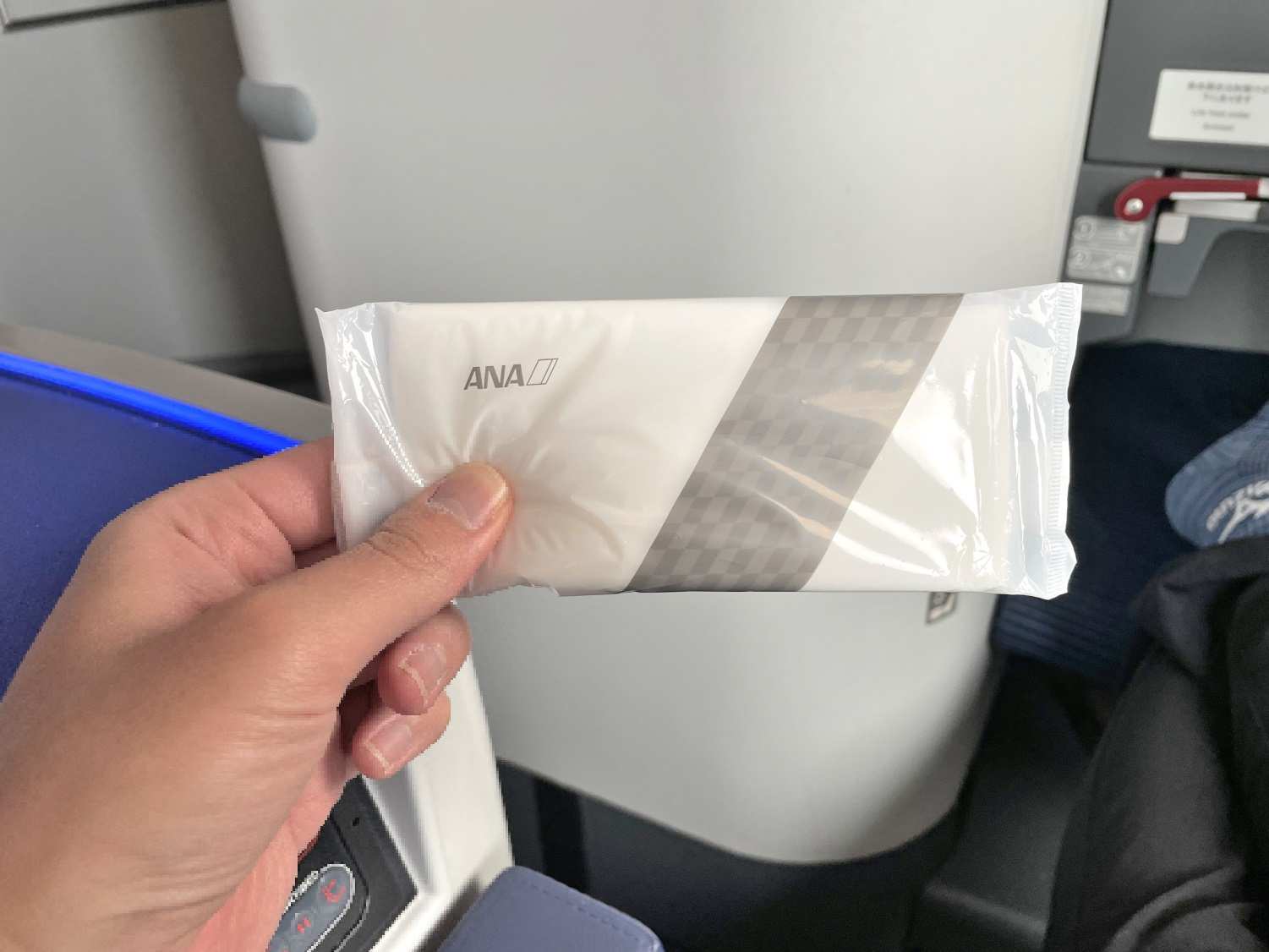 その他、プラスチックカップで提供されるウェルカムドリンクに袋詰めの分厚いお絞り。良くも悪くも安定のANAですが、マレーシア航空では貰えたアメニティグッズがANAでは貰えないというのは寂しいものですね…。