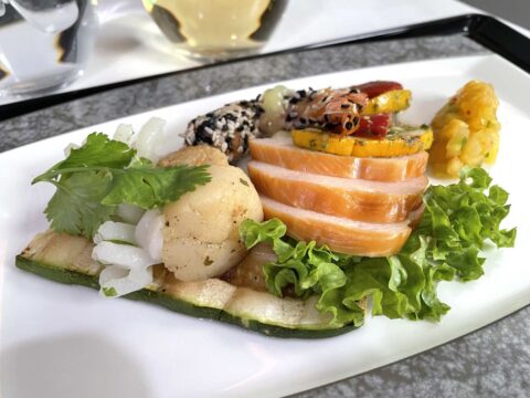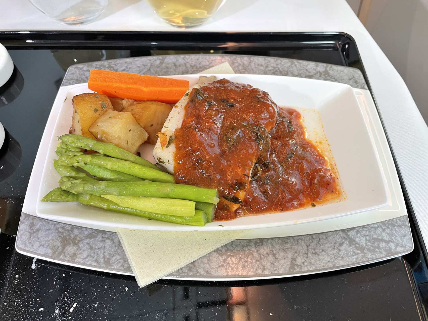 比較的近距離な東南アジア路線の中でもハノイやマニラとは差別化されていて、アミューズから前菜・メイン・デザートまできちんとコースで出てくるのは素晴らしい!