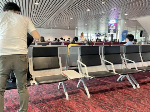 そのせいもあってか、搭乗前の待合室のまぁなんと静かなこと!久しぶりに見ましたよ、この光景。みんな怖い顔して下を向いてスマホいじって…。
