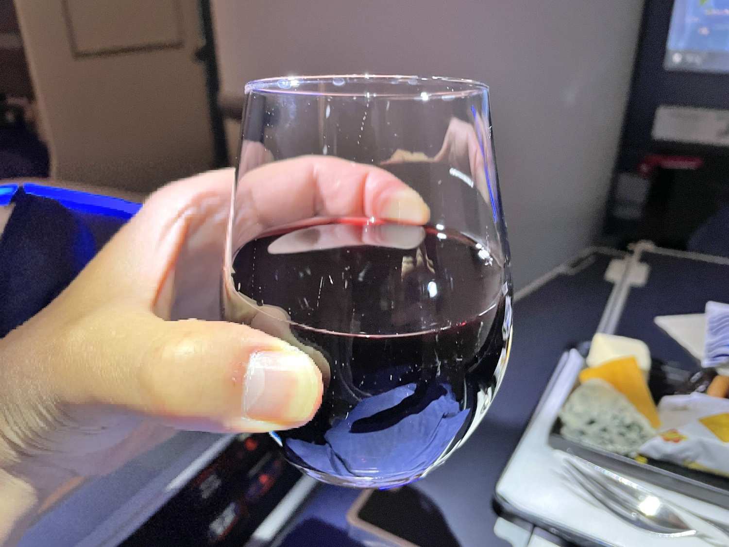 機内食の味はイマイチでしたが、チーズのお供に頂いた赤ワインがなかなか美味しかった!