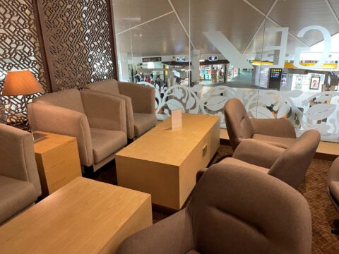 インテリアは特にゴージャスでもなく月並みで、日本にある地方空港のカードラウンジ程度でしかないですが、これでも何も無いブルネイ市内から来るとラグジュアリーに感じてしまうから不思議です(笑)。