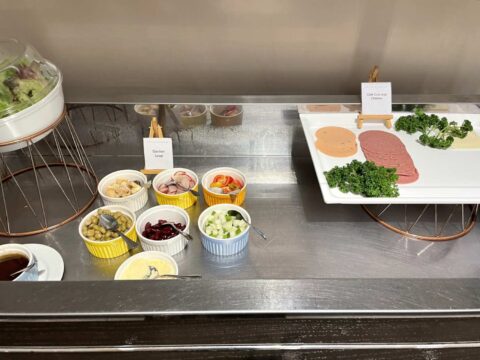 そしてこちらがダイニングエリアにあるビュッフェコーナー。オーダー式メニューは無く、料理は全てビュッフェスタイルのみです。