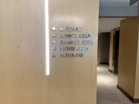 このラウンジ内には、他にもゲーム・ムービーといったプレイエリアや祈祷室も完備。でもGAMING AREAと書かれた所は閉鎖されて入れませんでした。