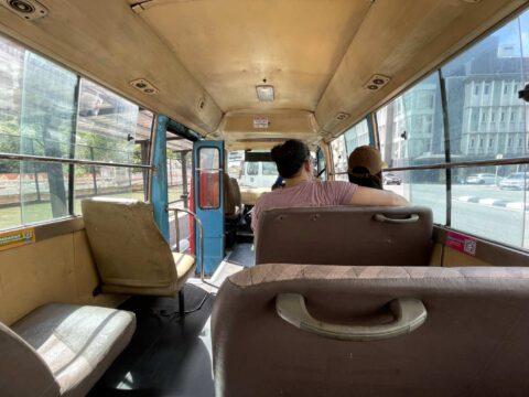 車体には印刷された路線No.と、その横には経由地の表示。バスは全てマイクロバスのタイプですが、外装にオンボロ感は無く、これでも東南アジアにしてはかなり綺麗な方なのではないかと。