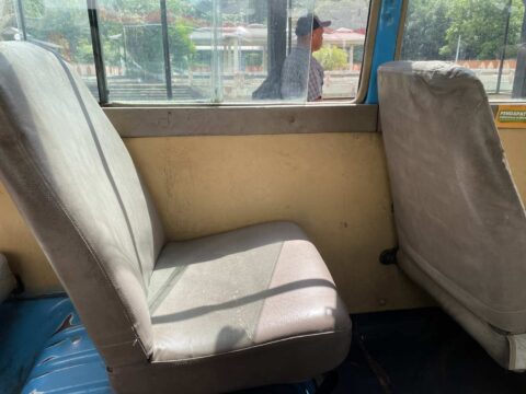 しかし車内はかなり年期が入っていて、煤だらけの天井に汚れた窓。もちろんクーラーも故障しているので、窓全開で走ります。まぁベトナムのオンボロバスの様にシートに穴が空いていないだけマシですが(笑)