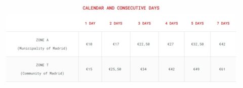 私はマドリード到着時に空港から市内へのアクセスに1回券を購入した以外、最終日までツーリストチケット(1日券~7日券)だけで過ごしましたが、これはZone A内の地下鉄の他、レンフェ(Renfe)やバス(EMT)、路面電車(ML)にも乗り放題となるので大変便利!あまり電車に乗らない人は10回券を購入するのも手ですが、回数の管理が面倒なのであまりおススメしません…。