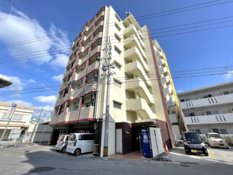 建物はこちらも8階建て。那覇市内ではお馴染み“Mr.Kinjo”系列のアパートメントホテルですが、フロントデスクがこの建物には無い為、チェックイン手続きはここから徒歩2分の所にあるMr.Kinjo in Nahaまで出向く必要があります。