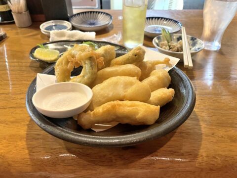 1階ロビーの脇には「あがいてぃーだ」という居酒屋があるのですが、予算一人およそ2,500円で腹いっぱい!安くて美味い沖縄料理が食べられるので重宝しています。