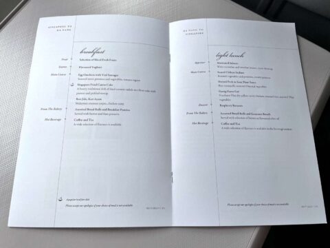 尚、機内食メニューはシンガポール航空のHPで事前にチェック出来るのですが、何故かメイン料理のメニューが事前リサーチと異なっていました。あくまで参考程度に考えていた方が良さそうです。