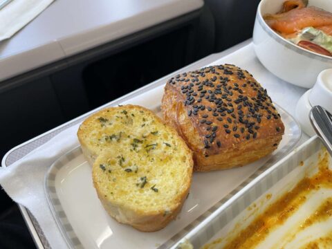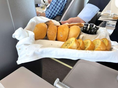 パンのラインナップにゴマとガーリックが含まれるのはマレーシア航空と同じですが、この地方ではこれが定番なのかもしれません。