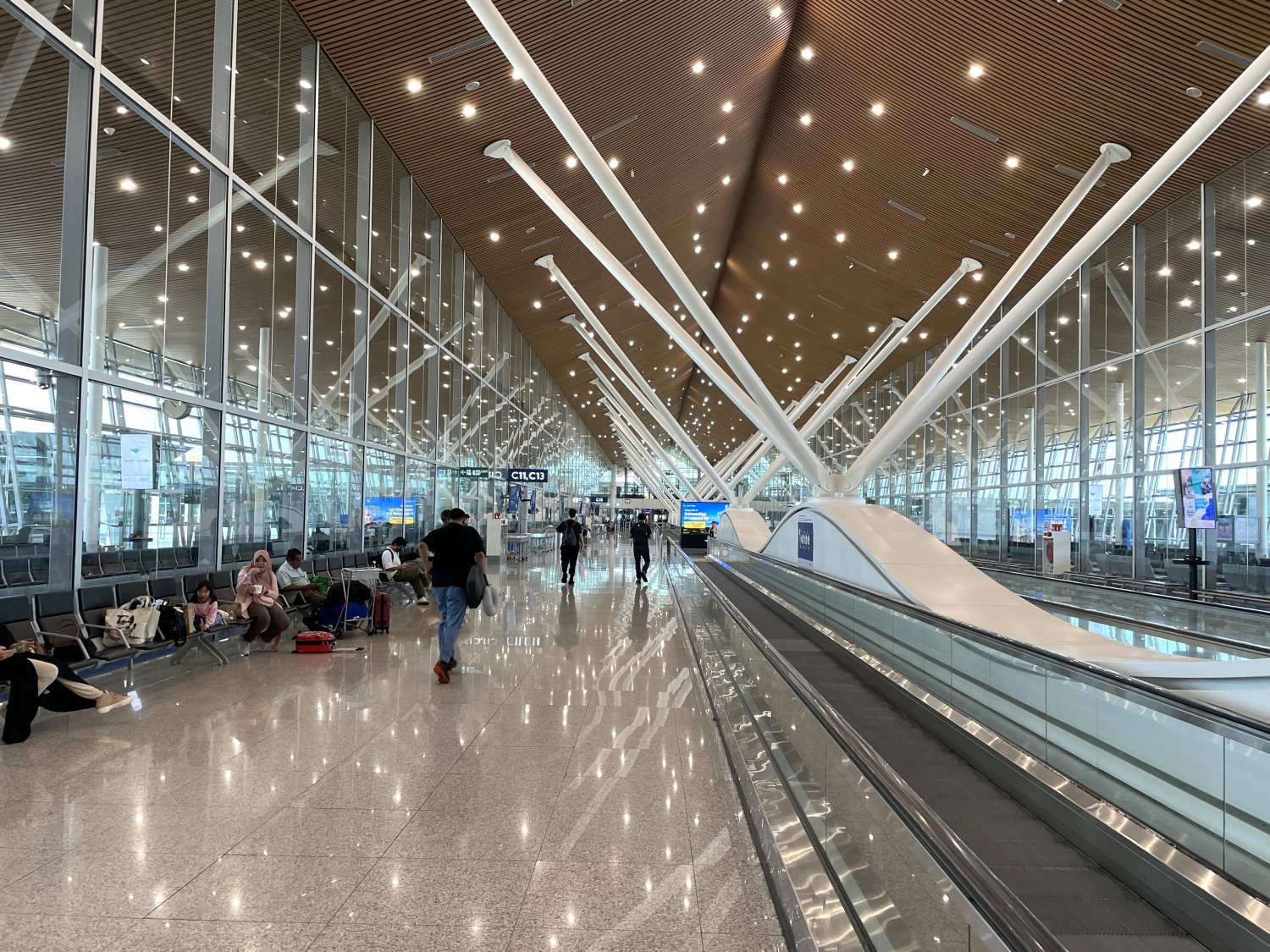 ブルネイ行きの出発はサテライトのC11ゲートから。ご存じの通りこの空港はゲート前に手荷物検査があり、その後はガラス張りのロビー内で搭乗開始まで隔離待機となります。