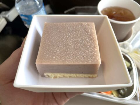 その他、デザートはクエ(ニョニャのお菓子)にスポンジケーキを重ねたもの。出来合いのパンと合わせて、これが一番まともな味に感じてしまう…。