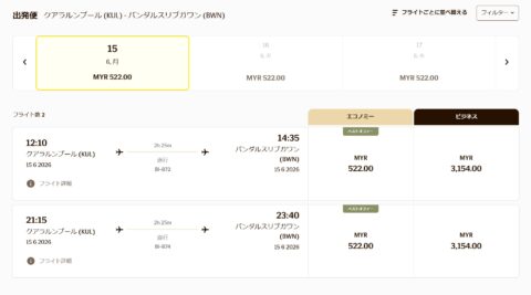 私が利用したのはマレーシアの首都クアラルンプール発の便ですが、運賃は半年ほど前の予約でエコノミークラス片道RM554。日本円にするとおよそ1.8万~2万円です。空前の円安とは言え、片道数千円程度で利用できるマレーシア航空の短距離線と比べたら随分と割高な印象。