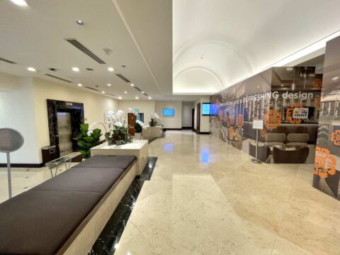 受付を済ませたら、客室のある一つ上の階へ。エレベーターを降りると目の前にあるのがSky Lounge。