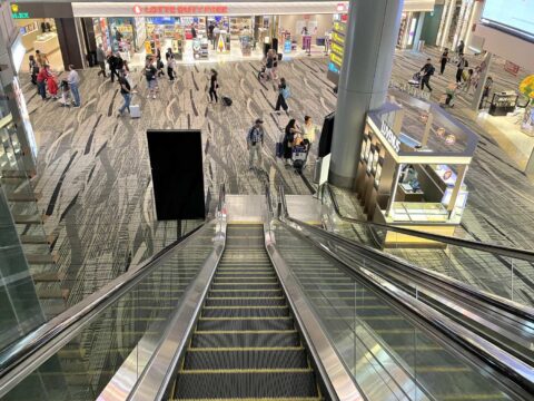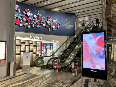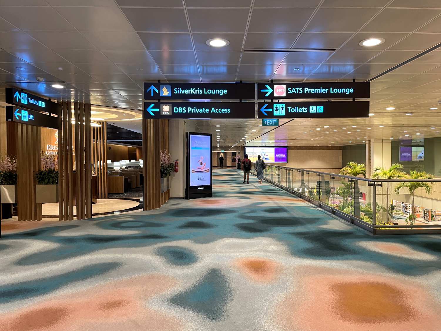 続いて、ターミナル2にあるシルバークリス・ラウンジへ。こちらはT2の制限エリアに入ってからT1方向へ進み、スカイトレイン手前のエスカレーターを上って進んだ所の正面にラウンジエントランスがあります。