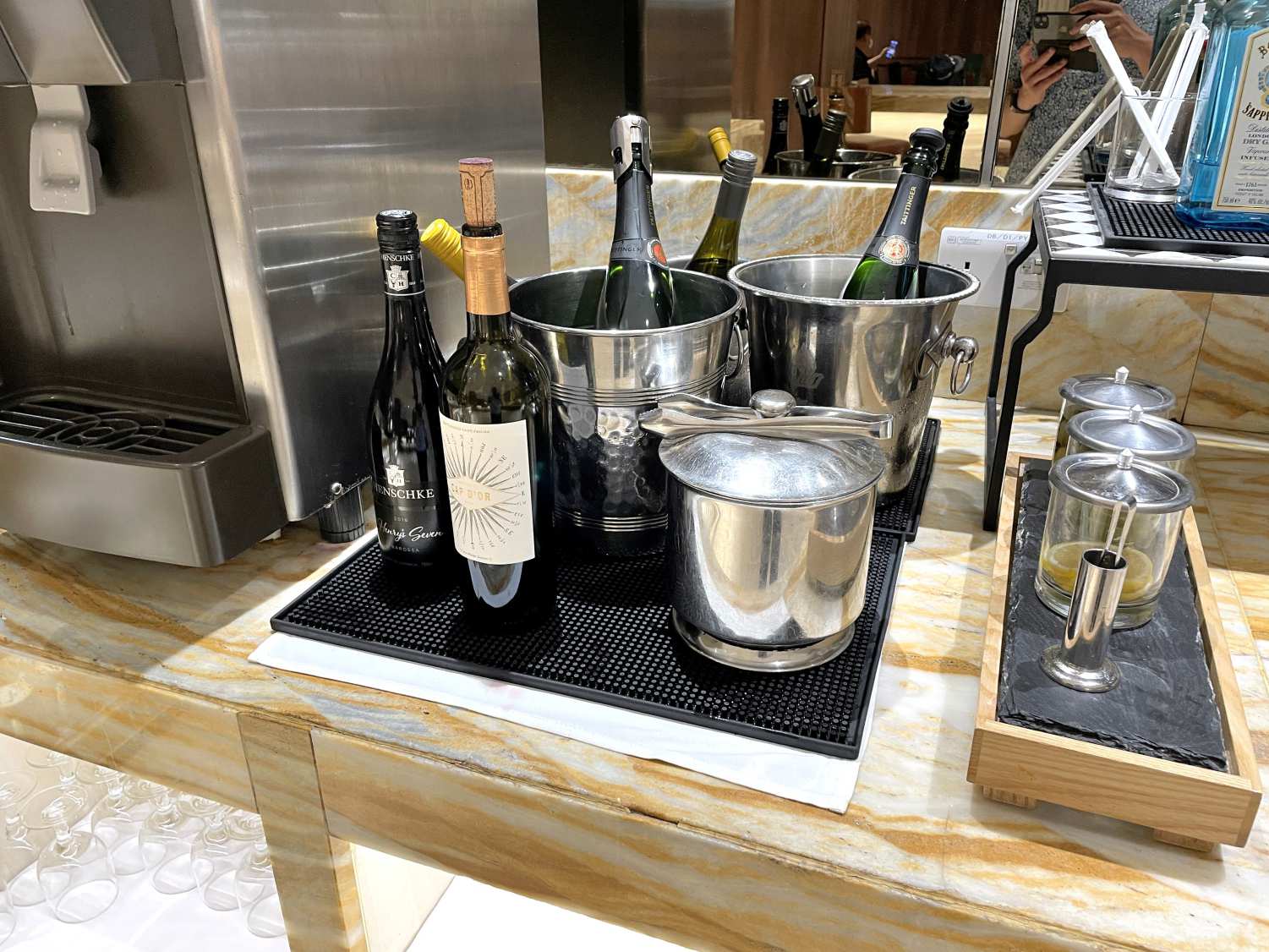 ドリンクもチェックしてみましたが、流石は上級クラス向けラウンジ。安いスパークリングではなく“シャンパン”が置かれているのは嬉しいところ!