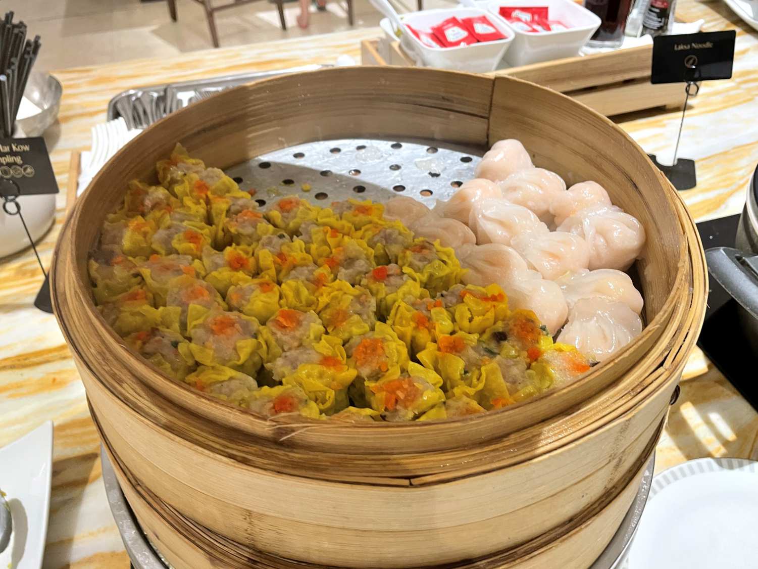 内装には不満タラタラですが、ビュッフェのメニューはなかなか種類豊富で、天心をはじめ中華系の料理がズラリ。サテー等のマレー系料理も用意されています。