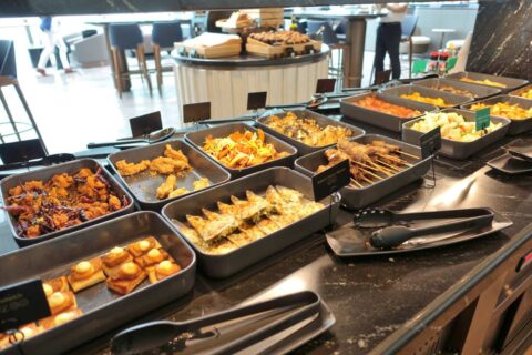 カタール航空の様なレストランが無い代わりに、ビュッフェは充実させたといった感じ。でもT3と比べてT2はちょっと種類が少ないです。