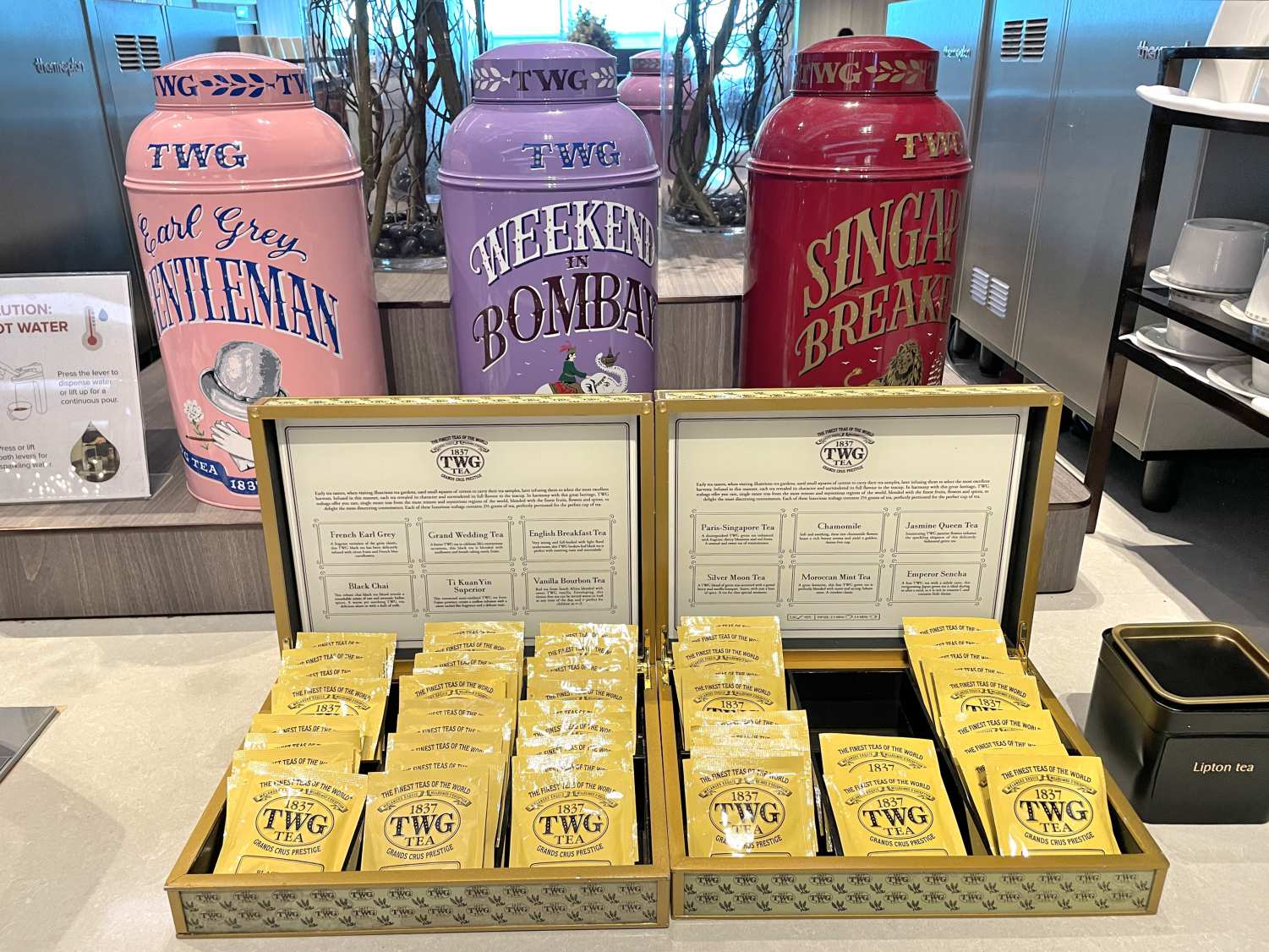 アルコールの他、シンガポールでお馴染みの超有名な高級紅茶「TWG」。様々なフレーバーが用意されていますが、勿論こちらも取り放題飲み放題!