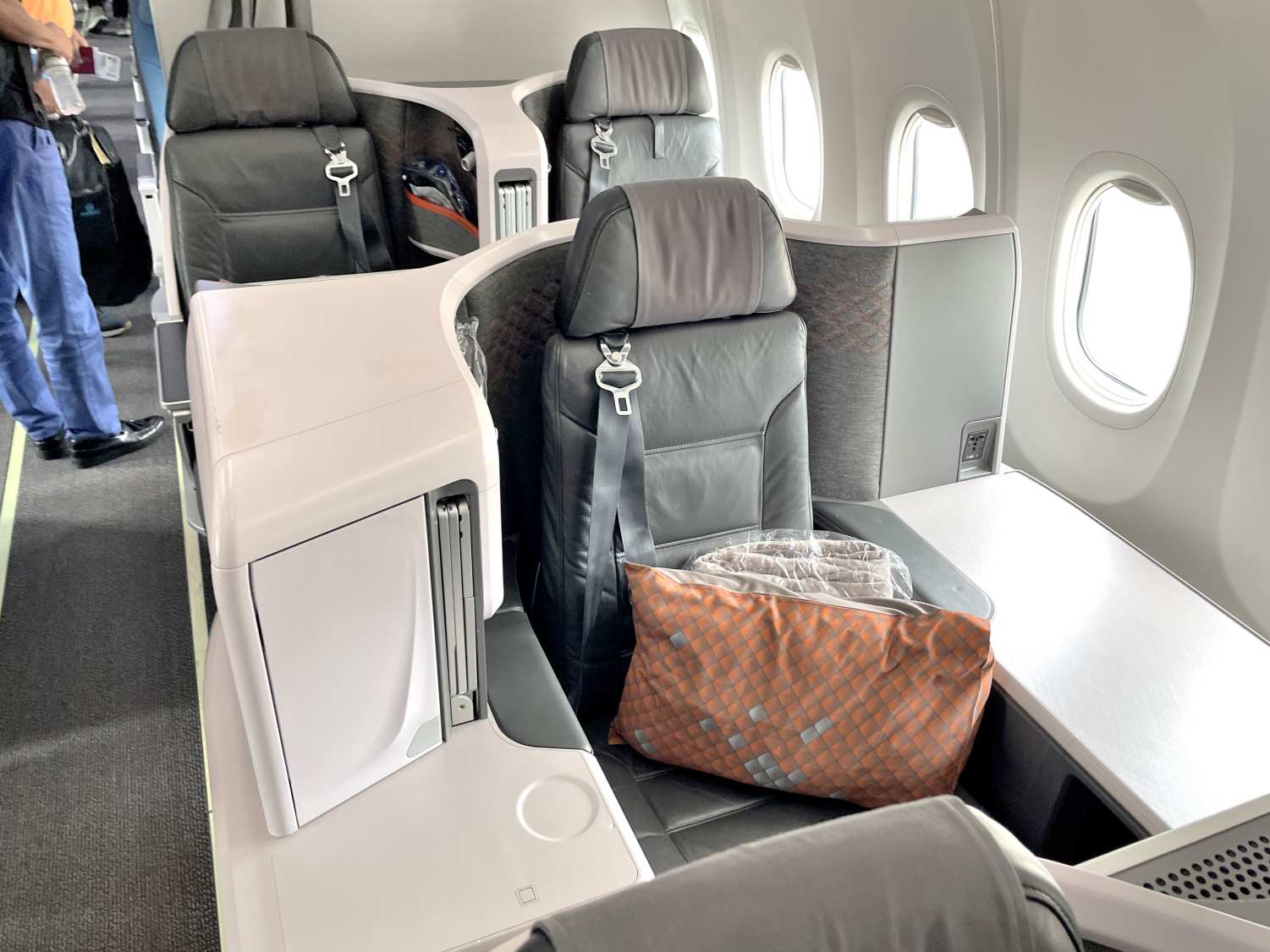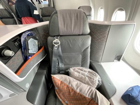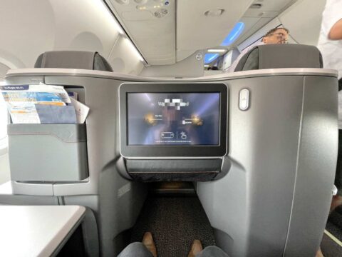 座ってみて分かるこの落ち着き、そして優越感(笑)!シンガポールまで2時間20分で着いてしまうのが勿体無いくらい、ほんと何時間でも乗っていられる快適なシートです。