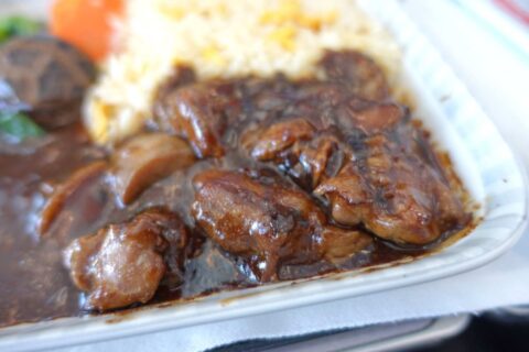 メインはチキンの「Chicken Thigh in Black Bean Sauce」をチョイス。見た目どおり濃い味のソースに長米のフライドライスで、これぞ“ザ・東南アジア”といった感じのメニューですが、こちらも味自体は上々です!