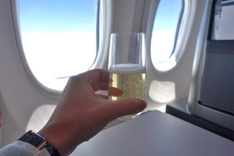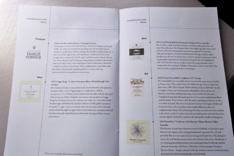機内食メニューとシャンパン
